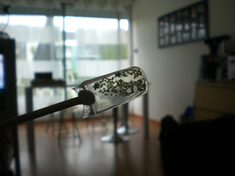 Bon ma première je l'ai un peu foiré, je voulais pas la remplir complètement d'eau mais du coup ça fait des bulles d'air... =/