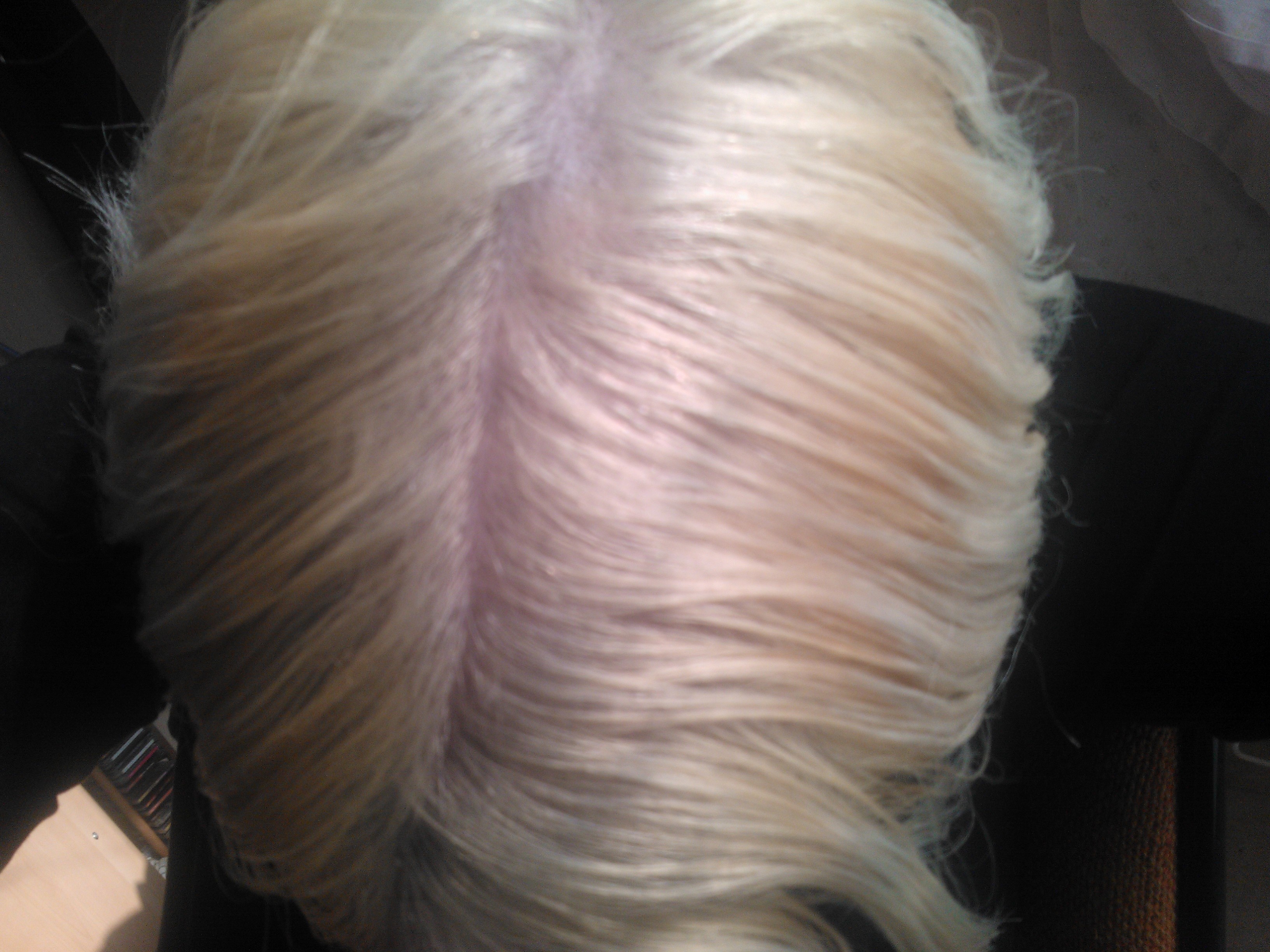 bonjour j'avais decolorer mes cheveux il y a quelque mois et sa a repousser d environ 4 à 5 cm j ai donc deco la repousse puis j ai fait une patine de cher revlon blanc mais ma repousse est plus jaune que la longeur commen faire?