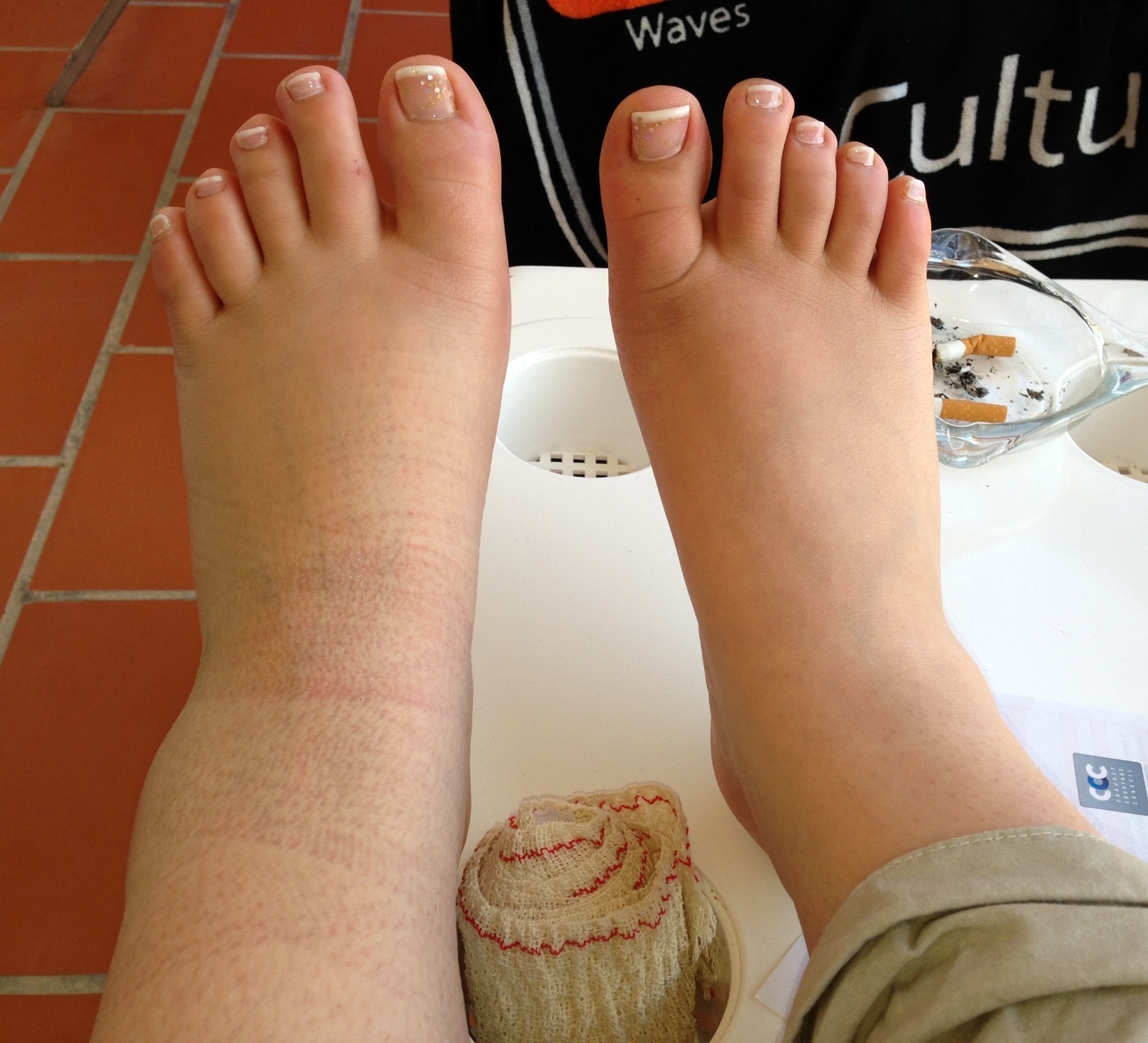 En plus je ne peux pas mettre de plâtre car dans l'avion ça gonfle ! C'est pour toutes ces raisons que je me force à attendre demain !