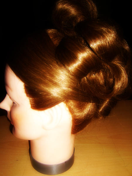 Voila cet apres midi j ai pris ma tete a coiffer que je n ai pas utilisé depuis tres longtemps et jme suis eclaté a faire un chignon rapide !