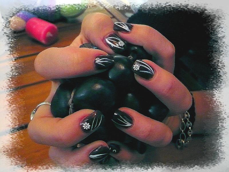 le reste c vernis chocolat et deco liner blanc et tit stikers fleur! voila!