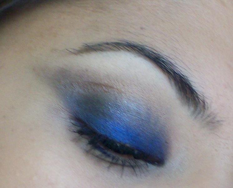 Salut les filles j'ai récemment acheté un trio d'ombre à paupière, les couleurs me plaisaient bien donc j'ai fait un petit make up avec, le bleu est plein de reflet très subtil mais la texture n'est pas top entre poudreux et crèmeux, malgré une base (UDPP) le bleu a filé. Biz à toutes !! Et en prime ma tête