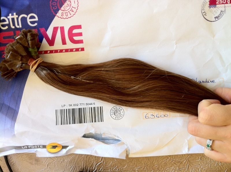 Bref, j'ai donc acceléré les démarches et j'ai commencé par acheter 50 mèches kératine chatain clair 100% naturelles de chez PROBEL chez un fournisseur spécialisé non loin de chez moi...