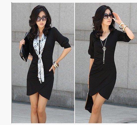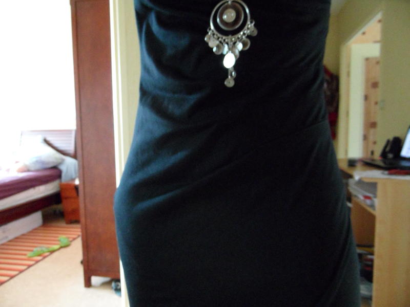 oui elle est très jolie elle fait très classe et je trouve que le décolleté n est pas provoc, dommage j aurais bien voulu voir l effet du milieu en bas qui remonte comment sa donne, je l avais repéré cette robe mais j avais abandonnée j pensais aussi qu elle était courte. avec un collant noir sa peu aller je trouve.