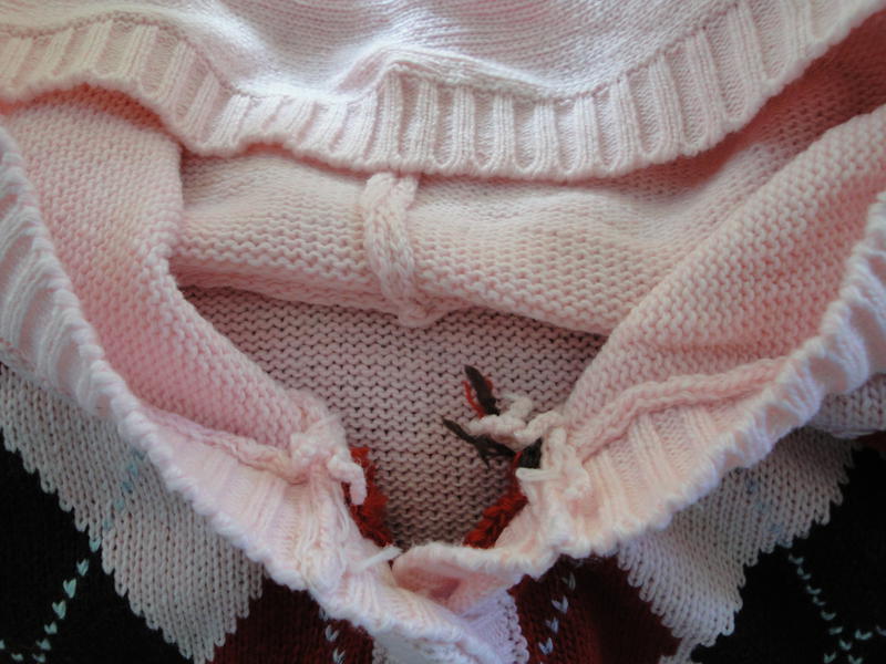 de plus je viens d'essayer ce fameaux pull rose pour le maison je me suis dit c bon! et bien à peine que je l'ai mis déjà une maille se détricotte :27-accident: jmdr mais bon c deux cent euro a la poubelle qd même de la :shit: la photo arrive