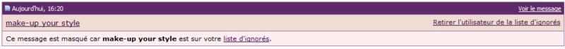 Je serais plus sympa le jour ou elle arrêtera de casser les gens moi ça fait 1 mois qu'elle me casse les pieds alors y a des limites a la gentillesse !! de plus miss make up a un nom merci bien !