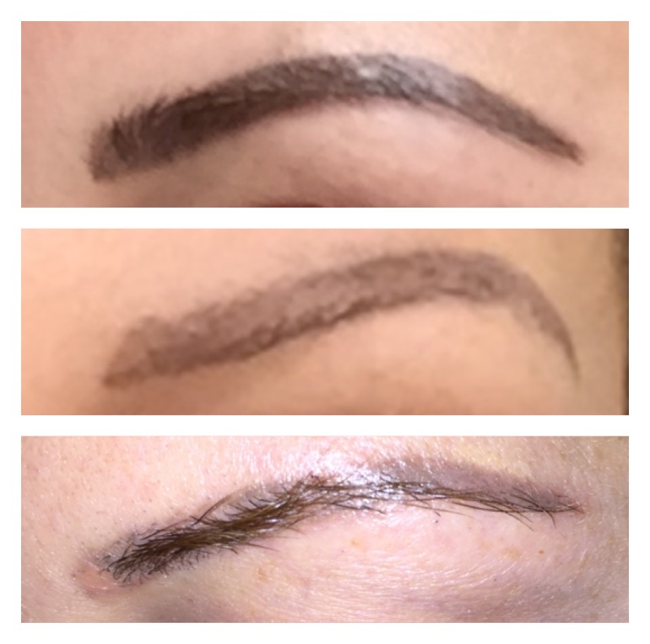 La partie que je detatoue Date 6 et 8 ans je l'avais fais 2 fois ,et la partie plus foncé que je garde(j'ai pas de queues sourcils) date de 1 ans en faite les anciens avaient viré de couleurs et la dame qui me les avaient fait à arrêté ...la nouvelle esthéticienne que je suis allé voir à voulu changé le dessin en me disant que l'on verrai légèrement les anciennes queues mais que avec un peu d'anti cerne on verrait rien (je me suis laissé faire j'avais été prévenu)non c'est pas un endroit connu genre l'A-------,c'est une esthéticienne