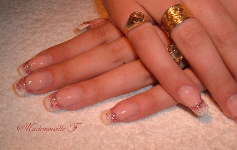 5) avec un pinceau gel bien propre, tu redélimite la french pour retirer les paillettes en trop sur le plat de l'ongle pour que la frenche soit nette.