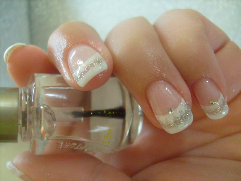 alors moi je fais d'abord ma french blanche normal ensuite je fais une files ligne au gel pailleté avec mon spot et puis j'étire puis seulement je catalyse...Voila