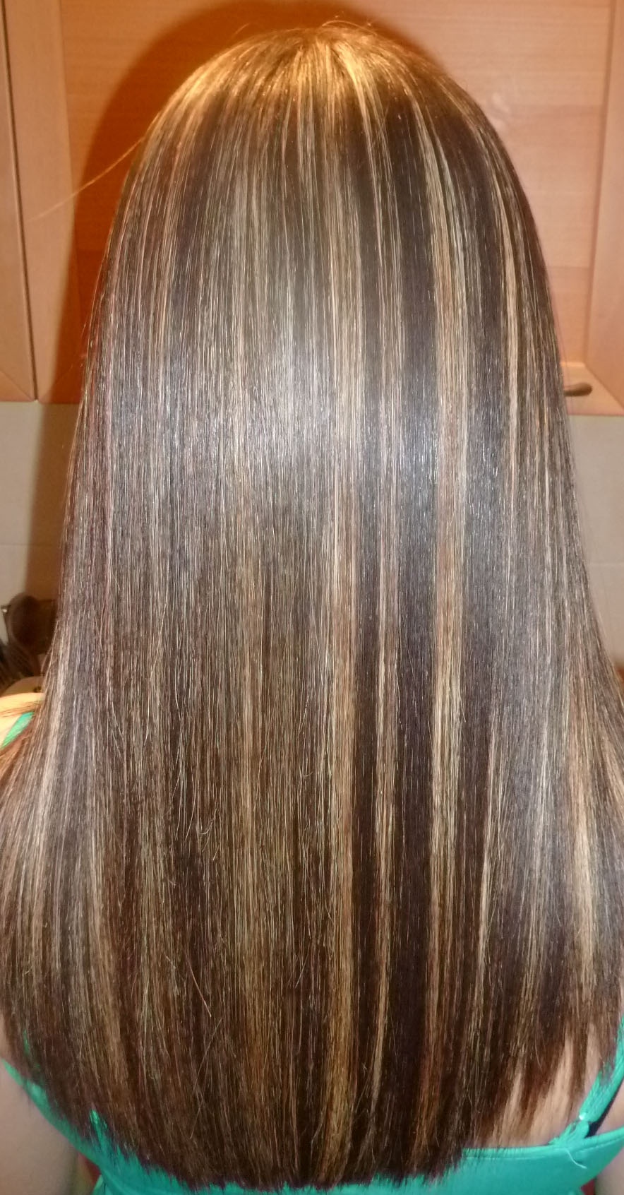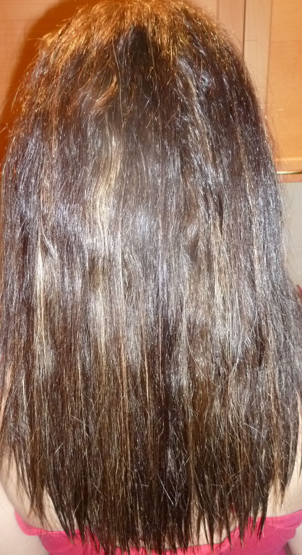 Et là c'est partit encore 2 heures de travail pour le lissage, je passe de 3 à 7 fois les plaques par mèches suivant comme elles sont imprégnées.