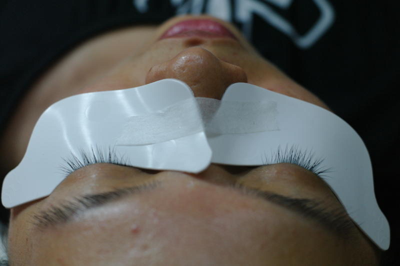 Par contre, je vois que tu as placé bizarrement tes patchs...n'oublie pas de bloquer les cils du bas avec du sparadrap pour éviter qu'ils ne se collent avec le haut !!