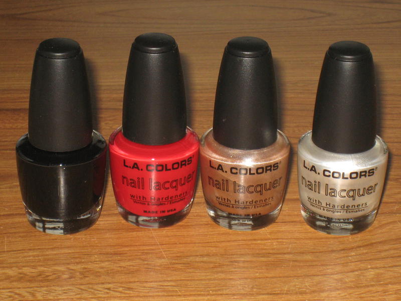 - Photo 10: vernis à ongles marque L.A Colors (dans l'ordre: black velvet, red carnation, grain et pearl)