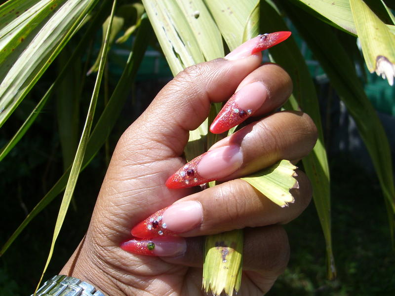 ce n'est pas du gel c'est de la resine rouge de cher magntique avec un pointe de blanctrès jolie pose!