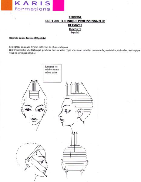 coucou les filles !! moi aussi je suis sur le devoir 3 avec la mise en pli directionnelle avec mouvement a droite !! je viens de demander a ma voisine qui est coiffeuse et elle ma dit qu'il ne fallai pa fair de raie ! (autrement il l'aurais préciser ds l'enoncé ) elle ma di qu'il fallai commencer en biais au niveau du milieu du sourcil gauche pour dirigé la plu grosse meche vers la droite puis faire en quinconce a partir de la 2 eme rangée de rouleau ( je sais pa si je suis clair lol) je suis entrain d'y faire mais dur dur de ne pas cassé les pointes lol vive l'entrainement !!