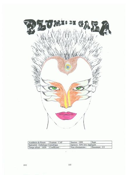je suis en train de faire le devoir 2 du maquillage artistique ( plume de gala ) je scan un exemple pour savoir si c'est bien..ou j'en refait un autre ^^