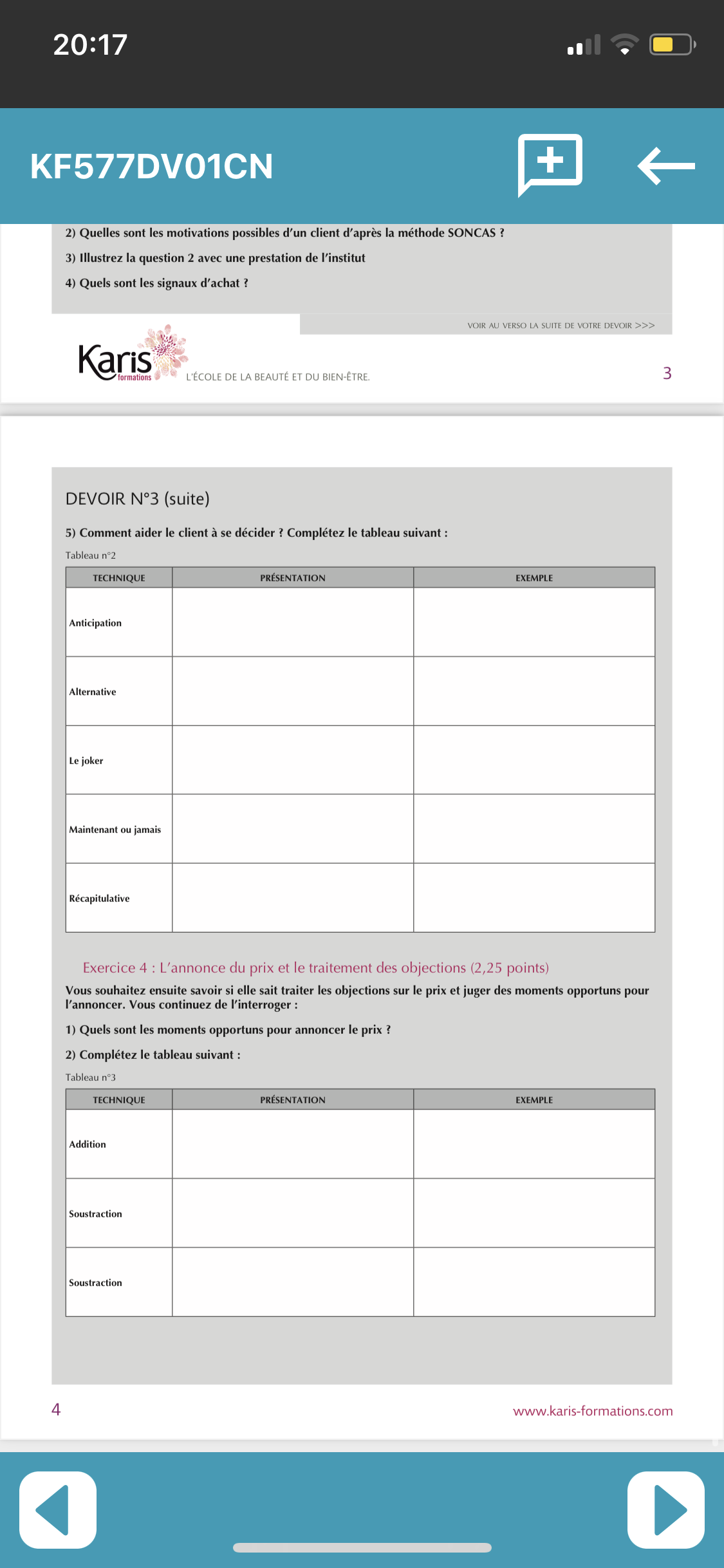 Bonjour s'il vous est ce que je peux avoir les corrections des Devoirs de la vente en esthetique 123et 4 si vous en avez
