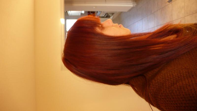 Puis le jour où j'ai voulu faire rouge elle m'a redécapé les cheveux (toi je pense que tu devras en faire 2 pour bien éclairsir tes cheveux en une seule fois) et elle m'a fait un 6.66 chez majirel mélangé avec un peu de mixrouge.