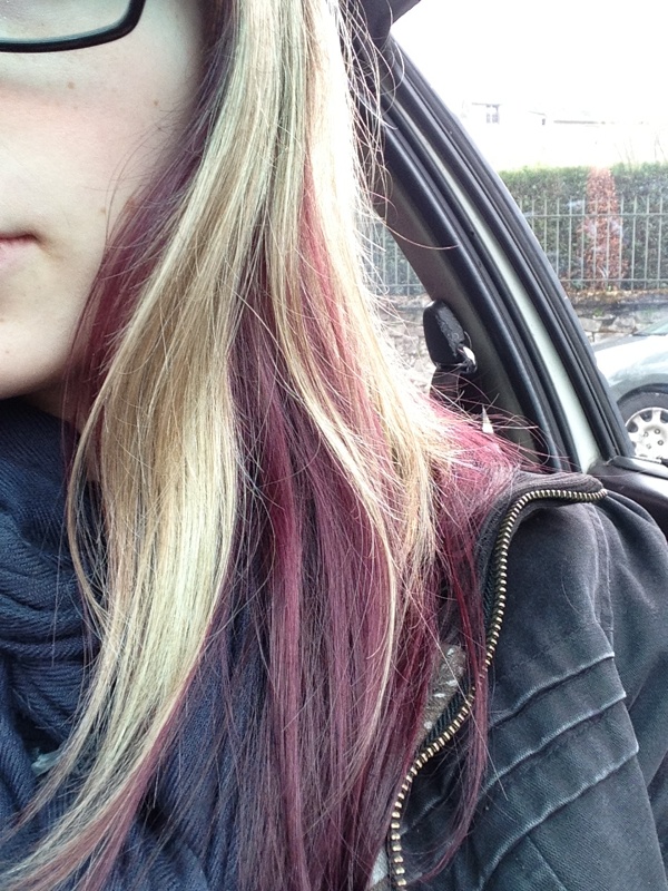 Et sur mes cheveux du dessous j'ai 2 mèches colorées de chaque côté. Violine