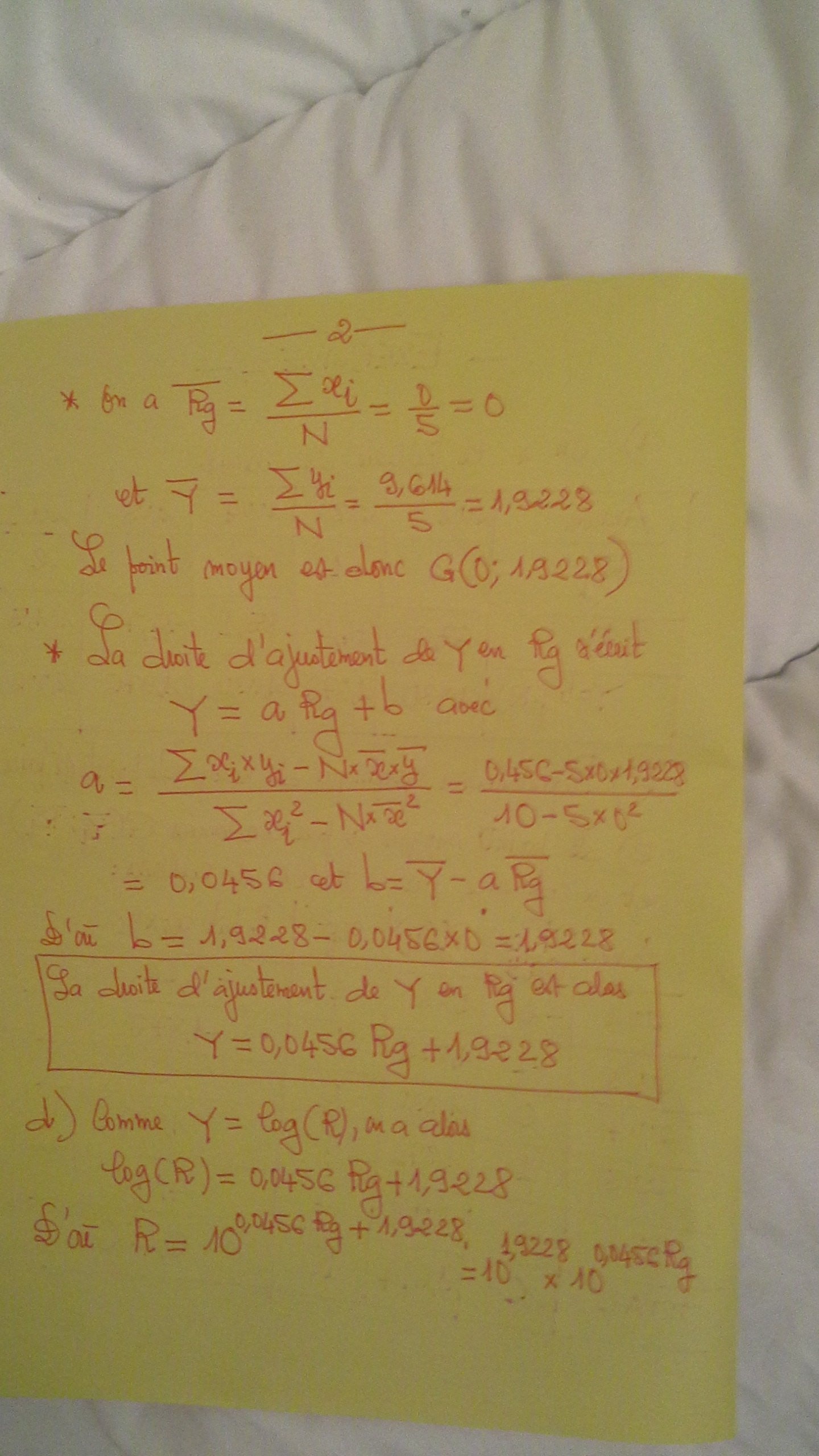Franchement, je ne comprends toujours pas pourquoi on vous donne des exercices qui ne sont pas au programme avec des énoncés mal posé un coup en abscisse c'est Rg, un coup ça devien R dans le même énoncé.