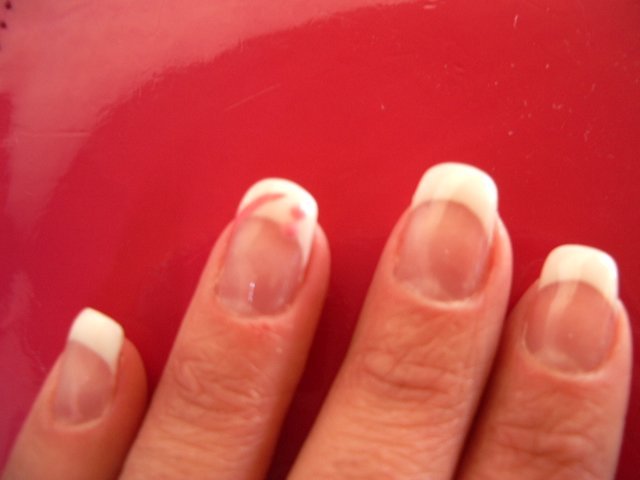 Pour une débutante, très joli, belle pose, french et bombé correct, bravo