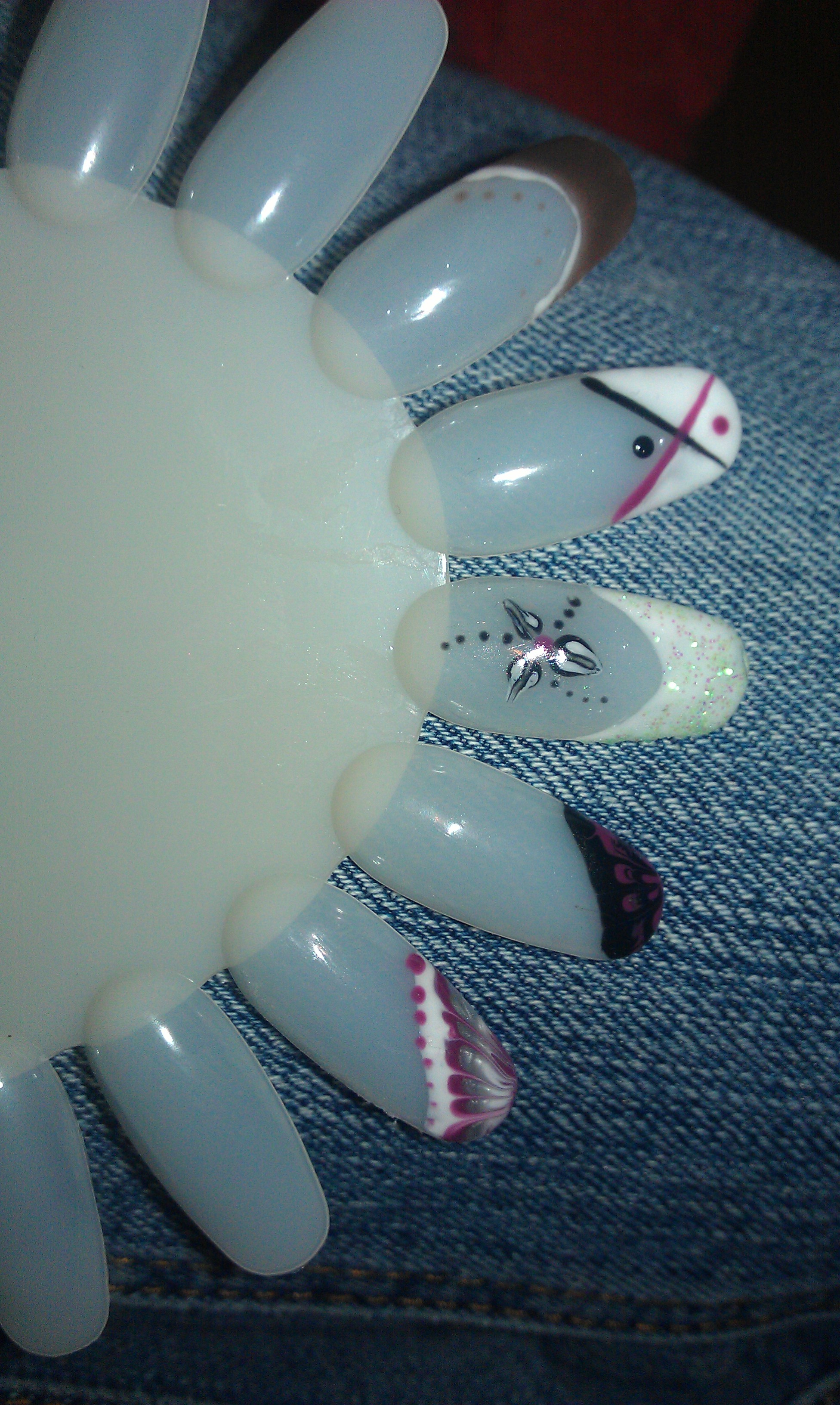 Je m’entraîne pour faire des frenchs "droites" cad qu'on ne voit pas que je tremble tellement je suis stressée, et j'ai oublié de repasser avec un pinceau pour affiner les traits.