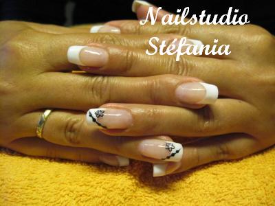 Quelques points au gel noir Tiré, Stickers Fleur et Strass pour le centre