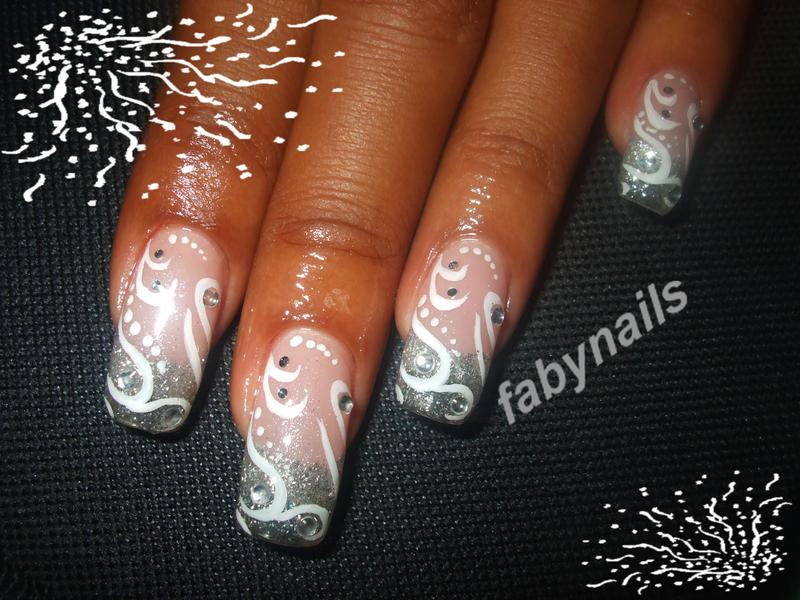 un autre style de déco!! ca peut donner des idées! gel confort onglerie be, paillettes flex blanc et strass