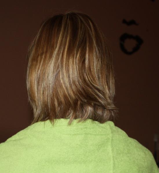 Ou alors es-ce que j'aurais du effiler un peu sur le haut .... ( je l'ai fais dans le dégradé devant mais je n'ai pas oser en haut...)