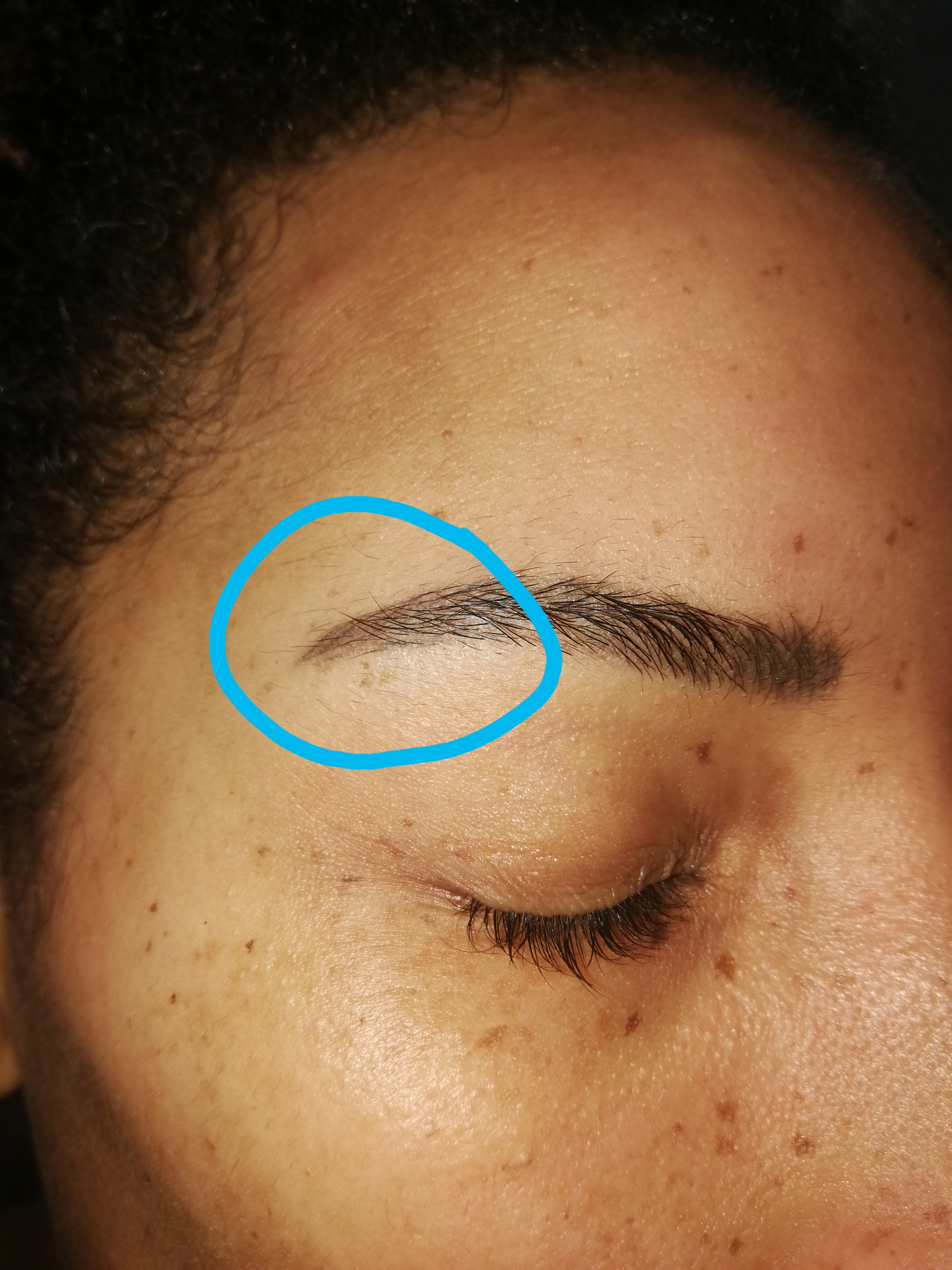 "la chance" que tu a c que c sur la tête et la queue du sourcil donc pour la méthode que tu choisiras pas besoin de tout raser.
