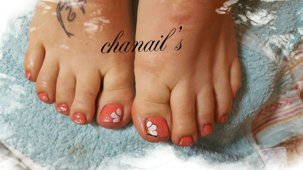 Et pieds corail et paillettes avec one stroke.