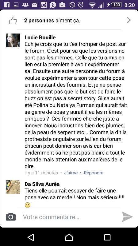 Vu le temps que je met a faire un ongle demain je ferais le second en mettant le vitrail et fourmis dedans en appuyant légèrement et catalysé qu ensuite. Au moment de la construction les fourmis sont trop épaisse.