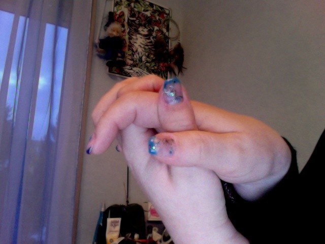 J'ai bien galeré en plus, le gel 'jean' ne voulait pas secher gentillement... Mais bon, je suis quand meme fiere de moi car pour une fois ...