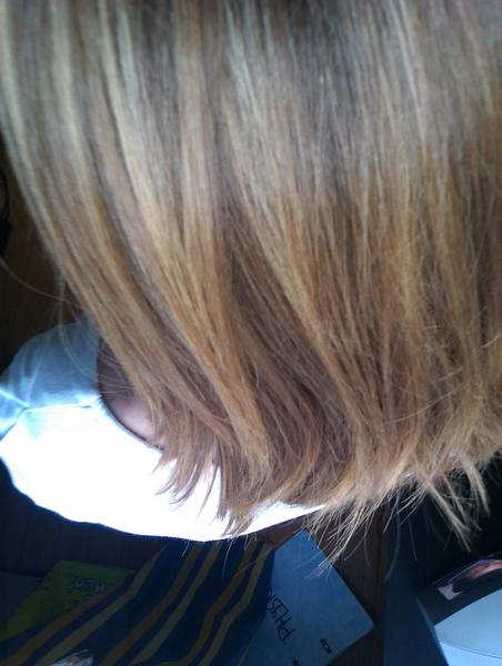 J'ai une base châtain clair, blond foncé avec des mèches blondes faites en juin dernier... Je suis allée voir une coiffeuse qu'une amie m'avait recommandée (un amour d'ailleurs, je la remercie...), et elle m'a dit que ça serait difficile de trouver exactement la même couleur que mes cheveux, qu'il faudrait donc que je passe par une colo. Elle me propose de faire un 8.31, mais je n'ai pas vraiment envie de toucher à la couleur (mauvaise expérience avec des colos marrons/noires... Bon là c'est blond, mais j'ai pas envie