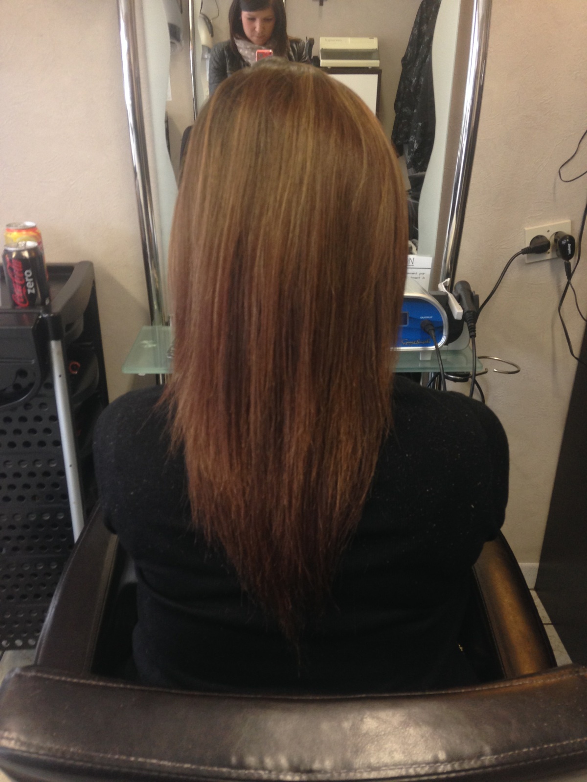 Dépose , legere retouche couleur et repose a ultrasons avec machine great Lenghts