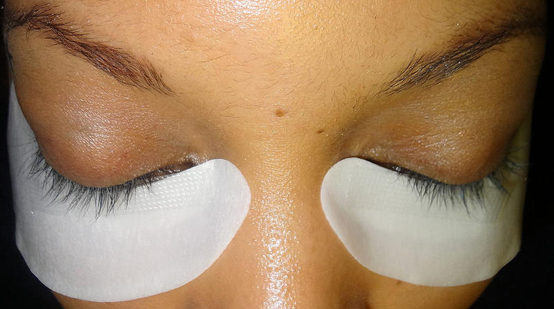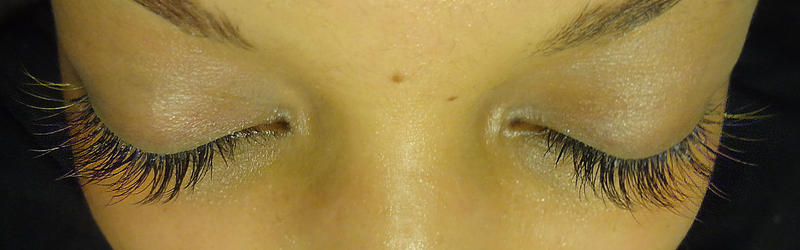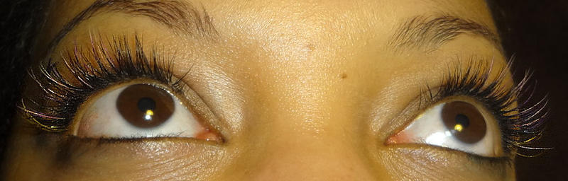 J'ai posé des cils de couleurs sur les 2/3 de l'oeil : rose et violet mélangés, puis des cils jaunes aux coins externes.