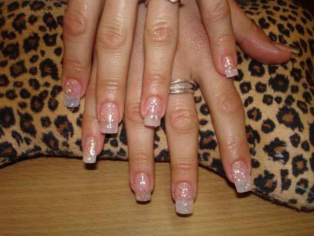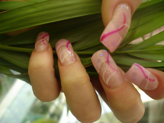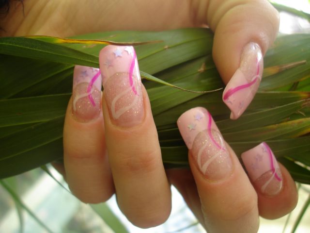Premiere , french avec capsules rose et plaque pngulaire en resine pailletée, et deco au liner.