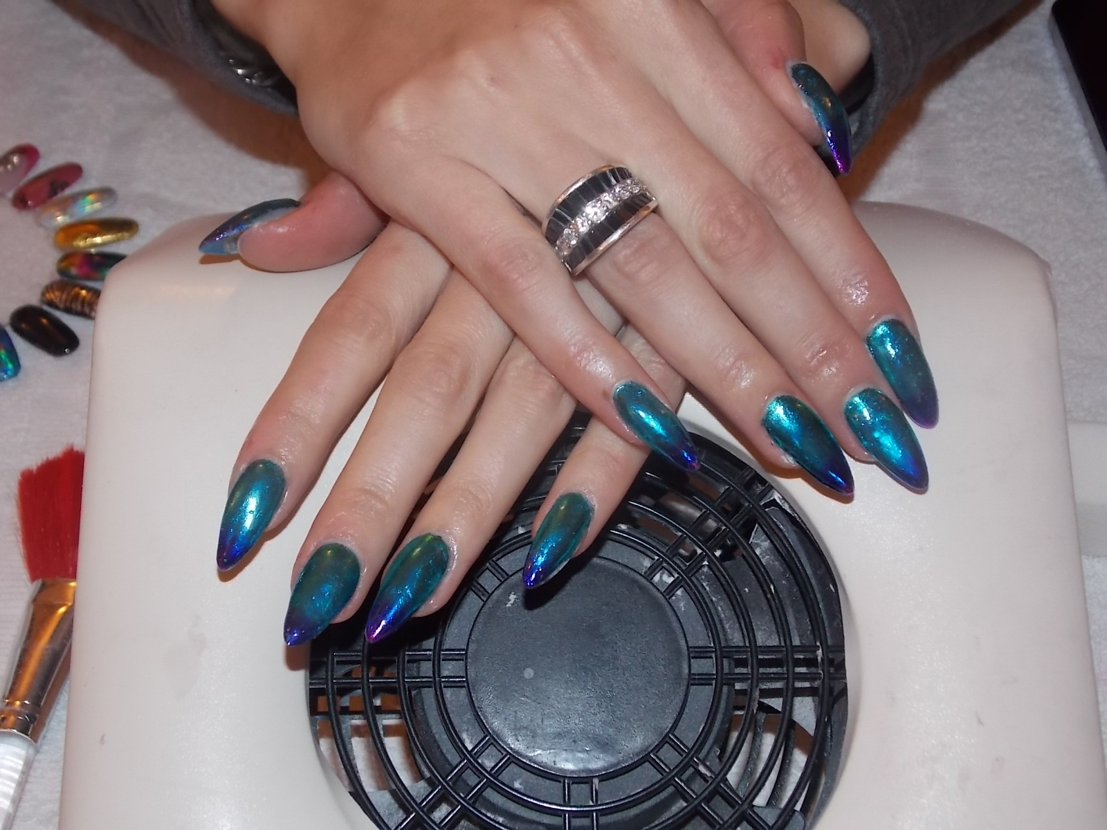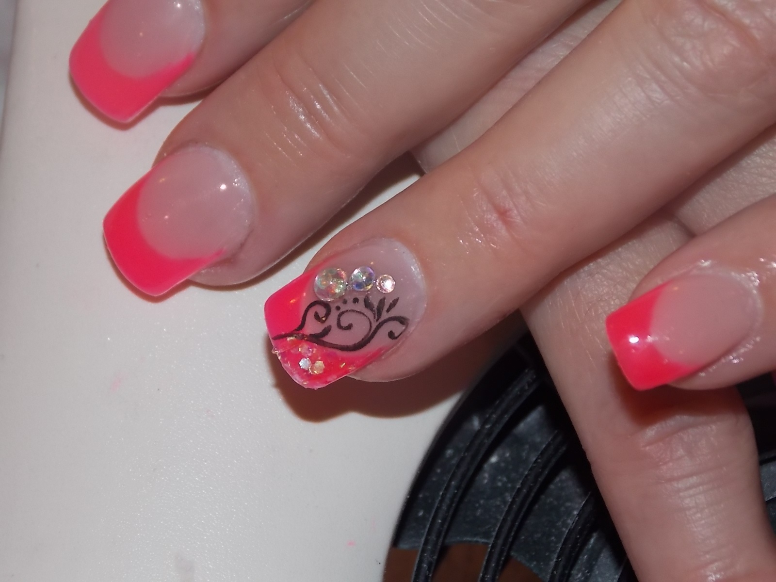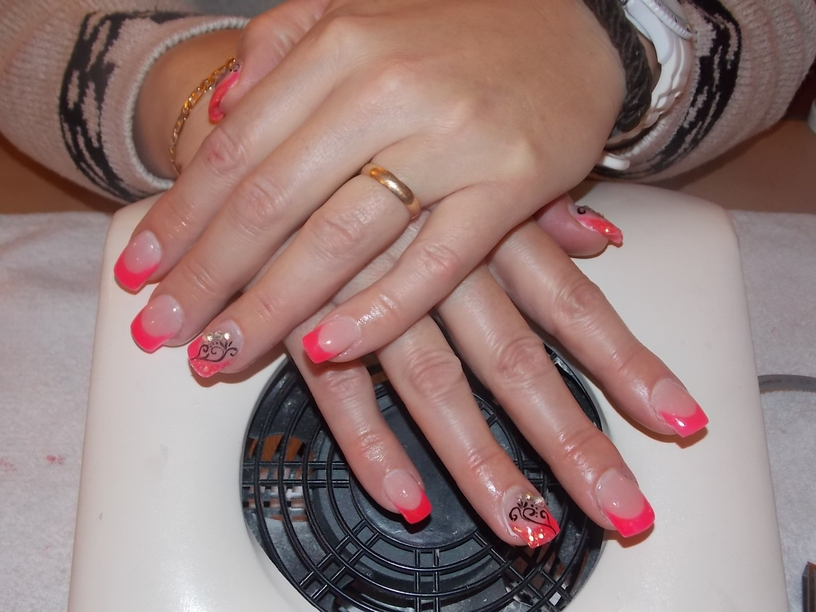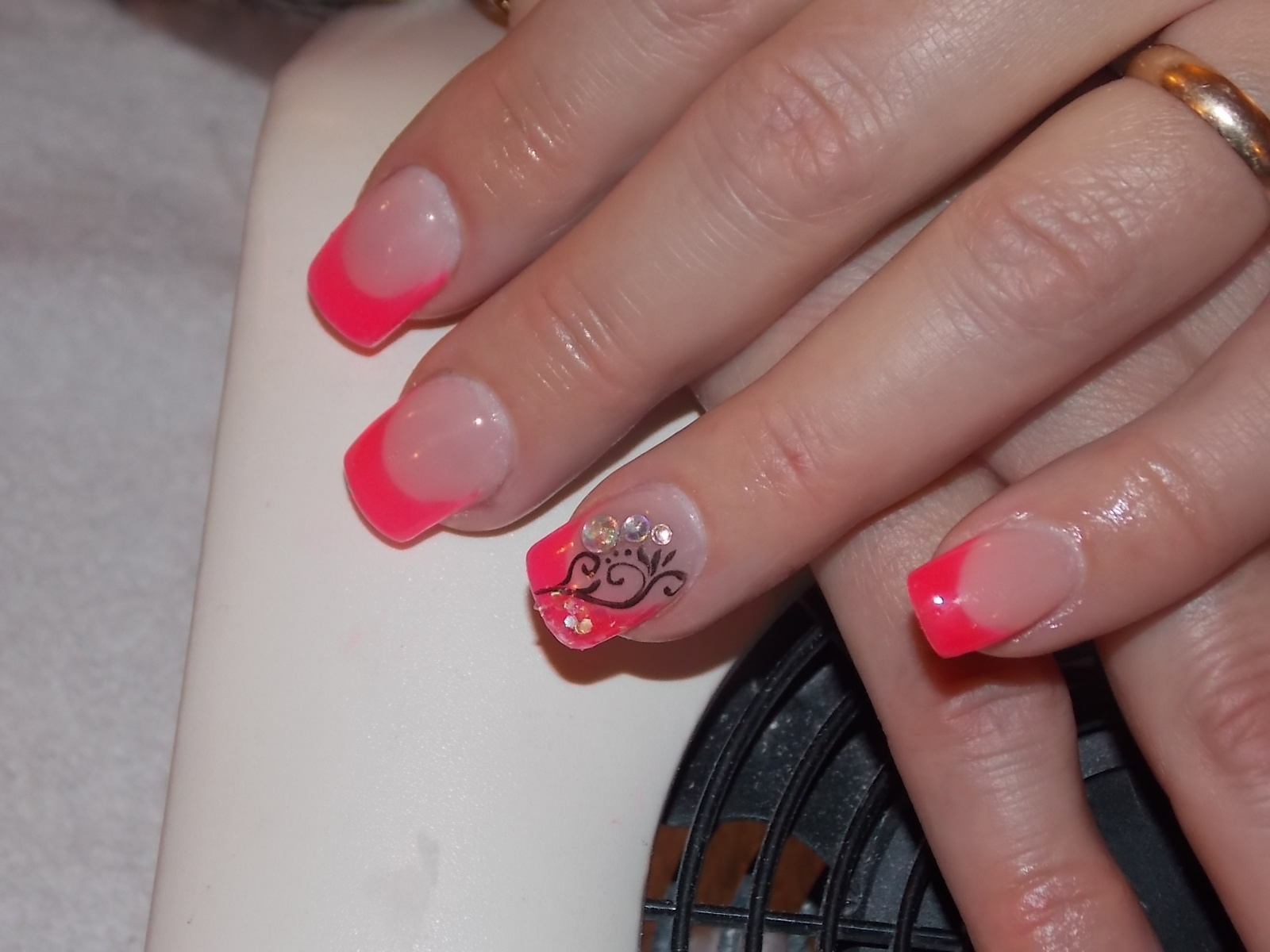 ( elle revient toutes les 3 semaines) , ses ongles ont bien poussés et elle est très contente. Malheureusement, en voyant la photo je me suis aperçue qu'on voyait son ongle naturel sur les cotés voilà, j'attends vos avis d'expertes