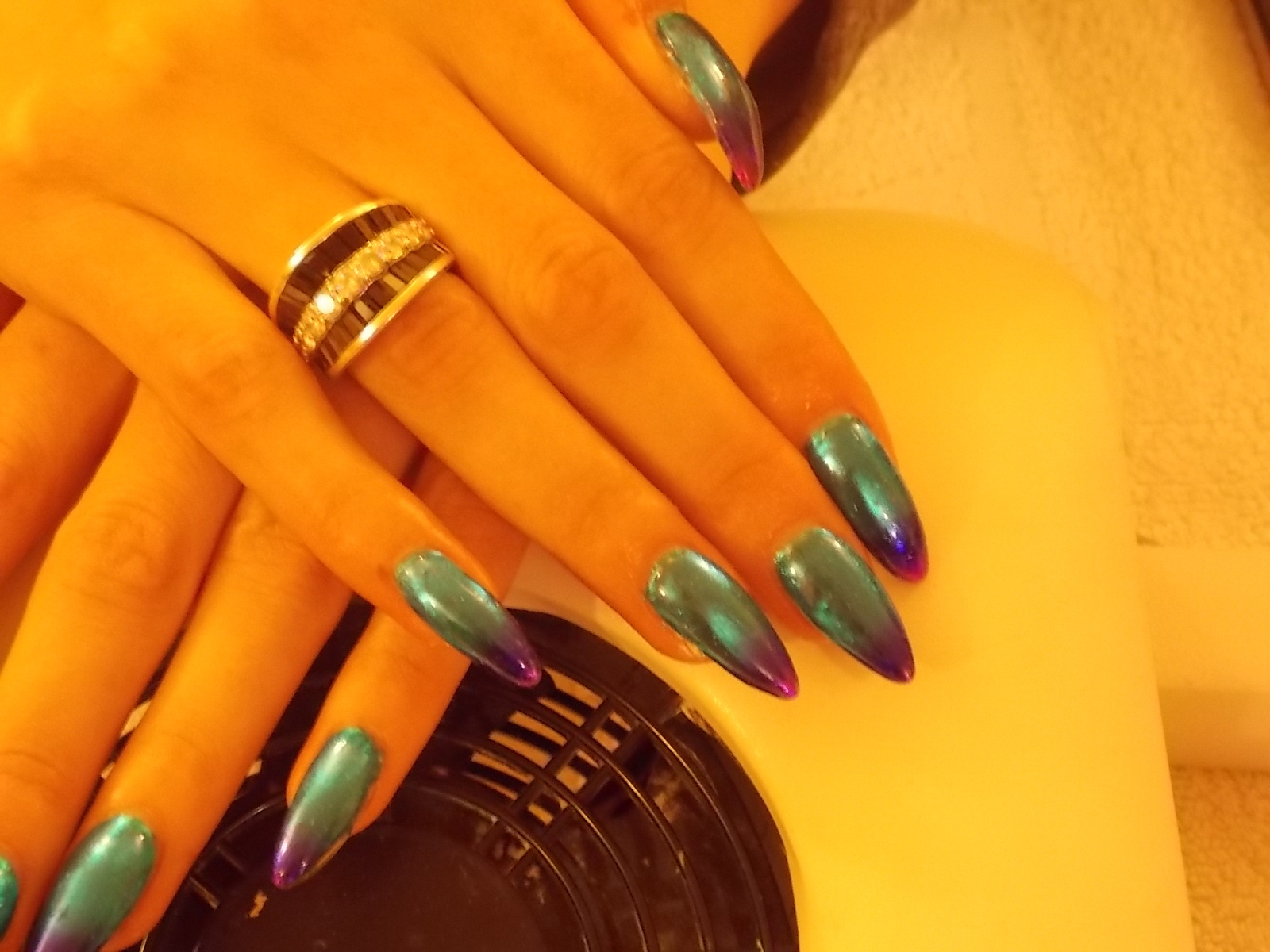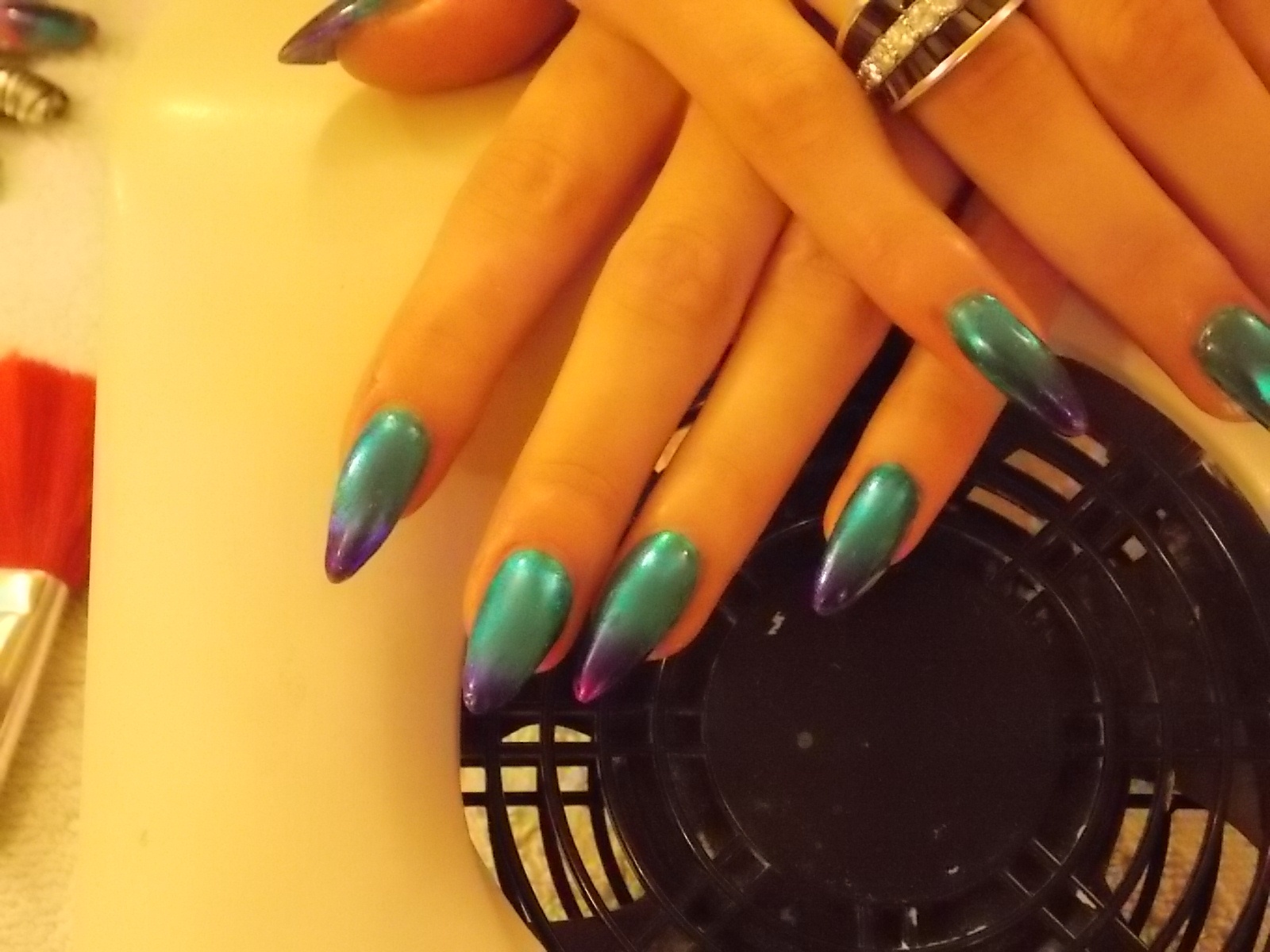 1ere: c'est une pose sur ongles naturels déco en foil intégral. C'est un joli foil au dégradé bleu et mauve. J'ai pris des photos avec flash et sans pour que vous vous rendiez bien compte de la couleur.