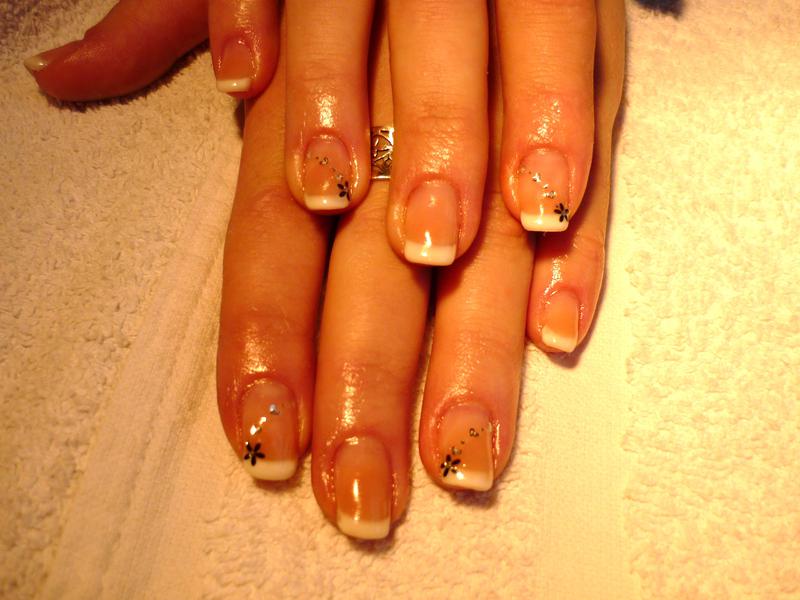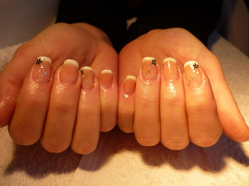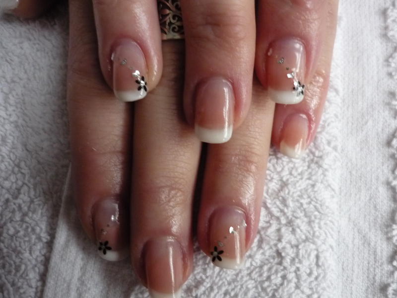 - J'ai eu pas mal de souci avec la french : pour la dessiner, mais aussi pour appliquer le gel qui s'étalait mal et qui, lorsque j'en met peu (c'est ce qui s'était passé la première fois) se rétracte. Du coup, j'en ai mis plus, mais cela fait des bourrelets ! J'ai essayé de le limer un peu après la construction, mais le blanc a sauté, du coup j'ai arrêté !