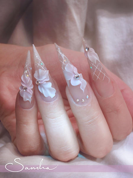 Décorations : Fleurs 3D faites à la main, traits blancs et swarovskis.