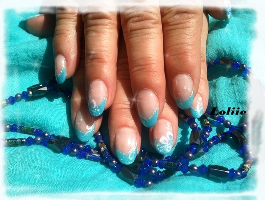 une nouvelle sur ma mere bleu neon pailleté, hibiscus ,rallongement au chablon , avant - apres