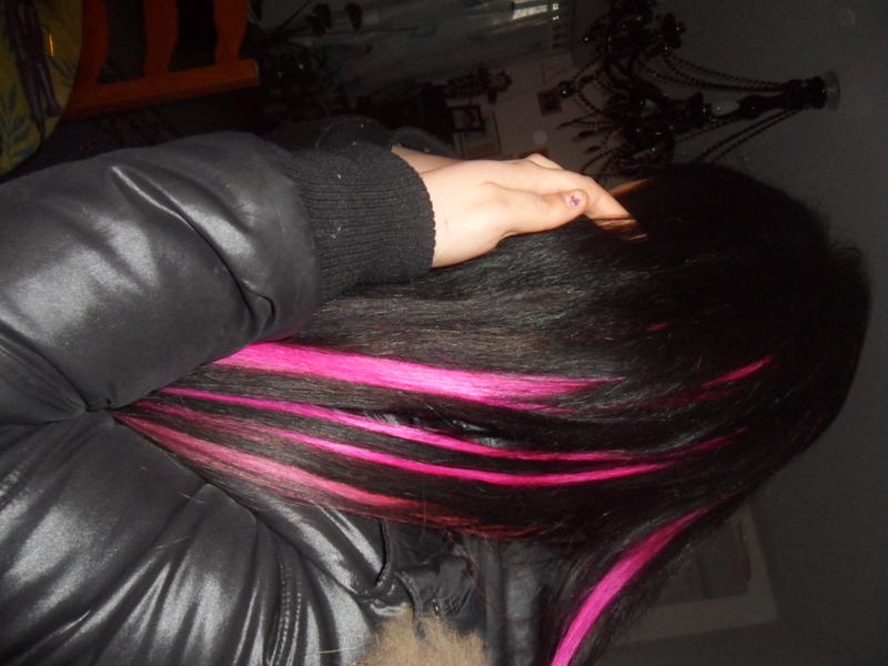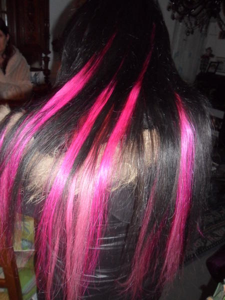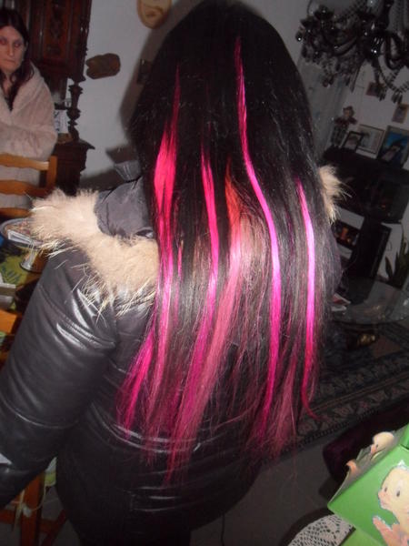 vouala le rendu presque 1 mois aprés au final je lui ai rajouté 25 méches en plus rose fushia et 4 noir comme il y en avait qui été partie je lui ai offert biensur.