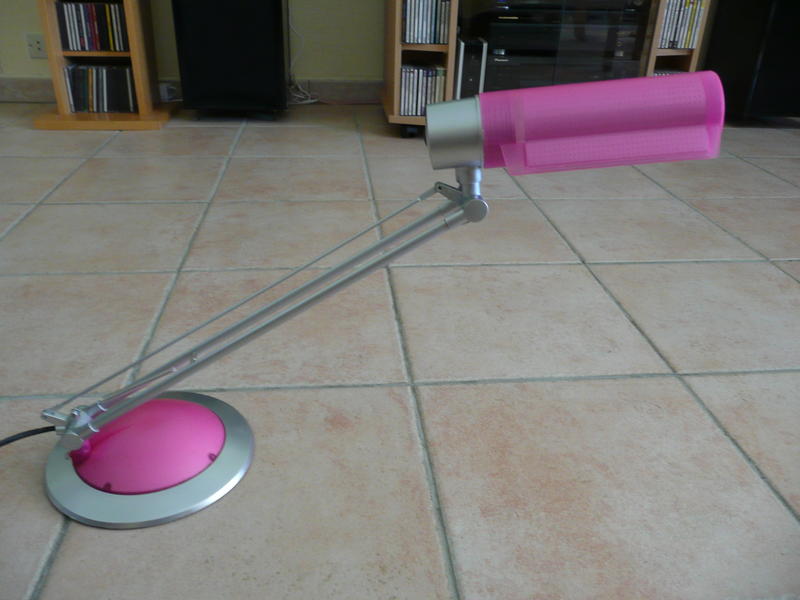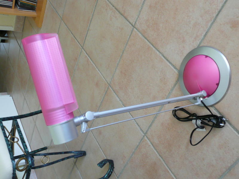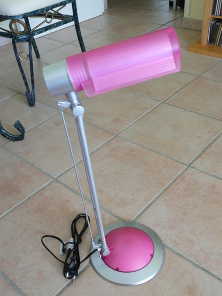 en tout gris (y'avait plus de rose) et franchement elle est super car tu peux mettre la lumiere pile poil ou tu veux !! le top quoi ! pareil 9.99€ chez but martinique moi!!