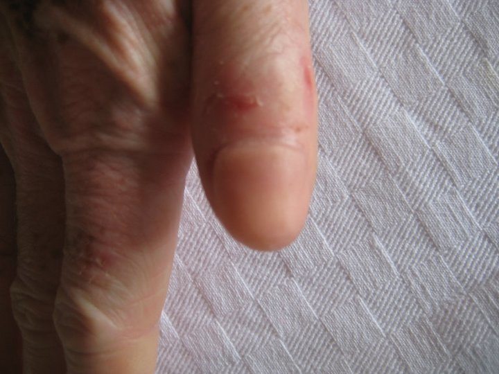 Des ongles entre guillemets car sur 3 doigts elle a plus du tout d'ongle !