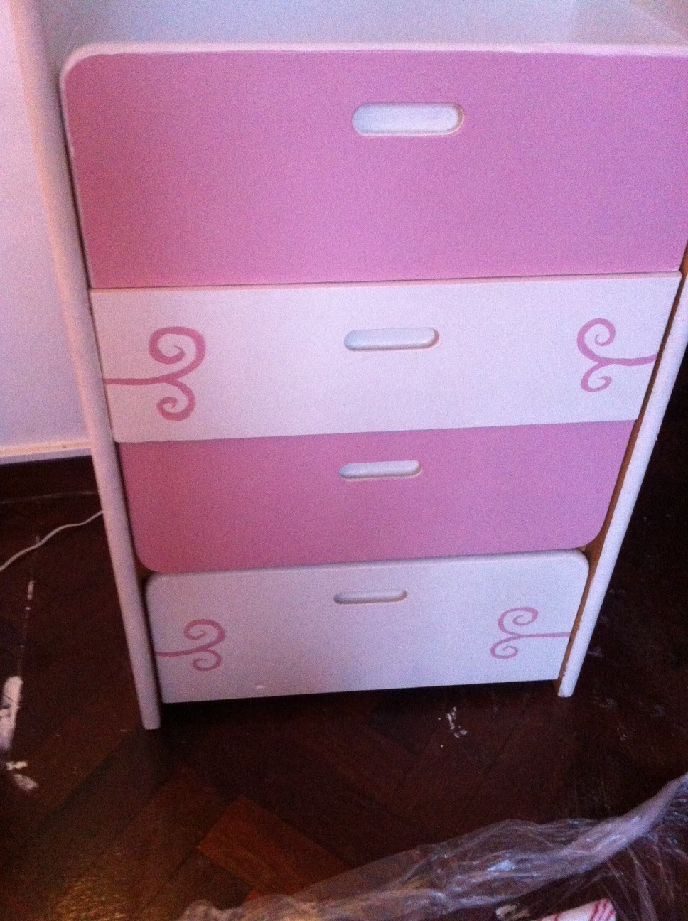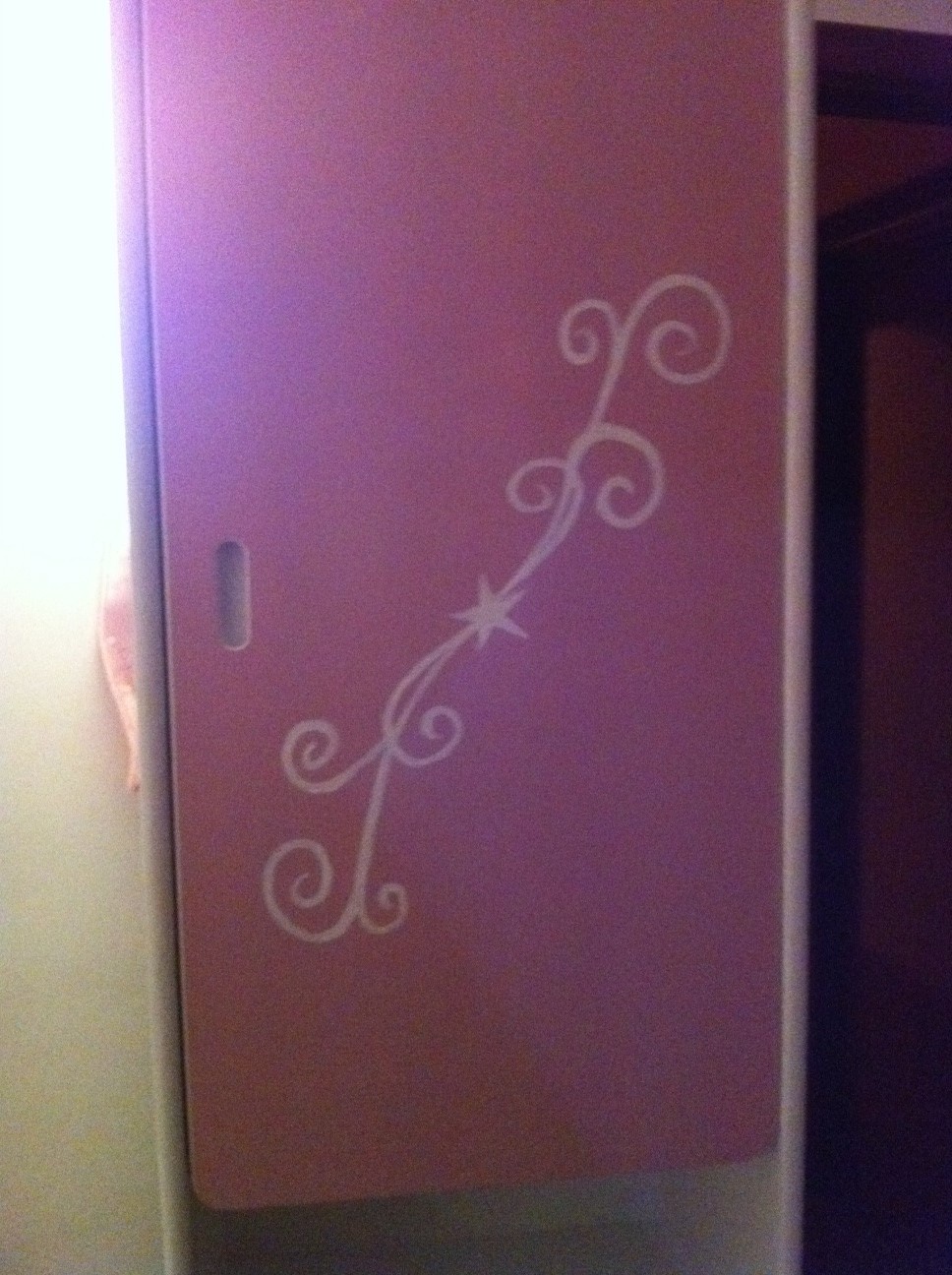 Ouiii j'ai peint une couche de primer blanc puis en blanc et certains bouts en rose (porte + une plaque) et dessus tout ça j'ai fait des arabesques du style comme sur mes ongles ptdr ! le truc avec l'étoile c'est un tatoo que j'ai vu sur le net