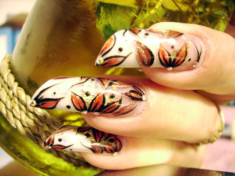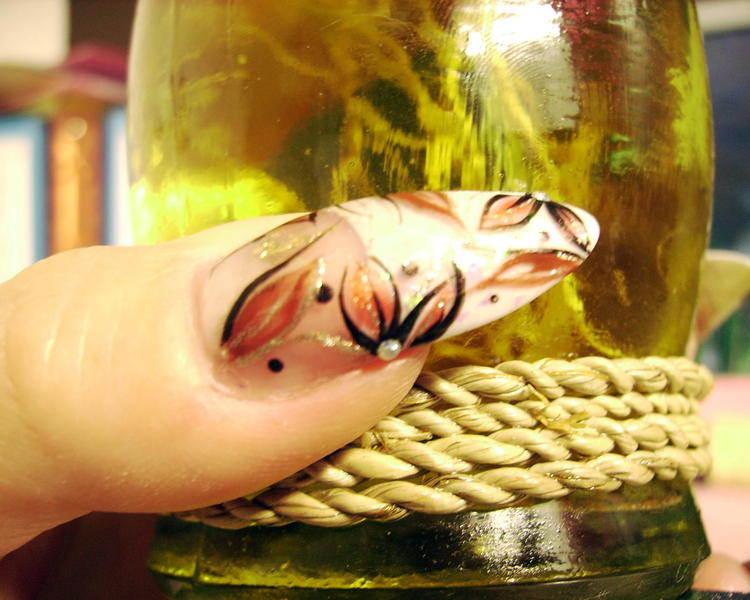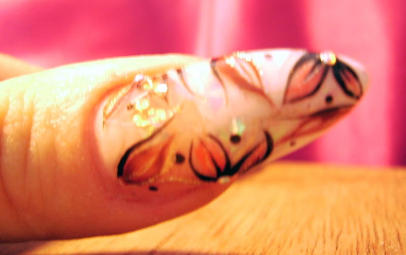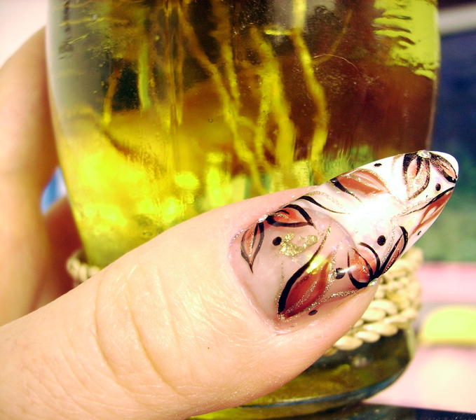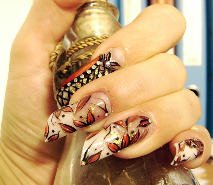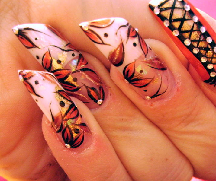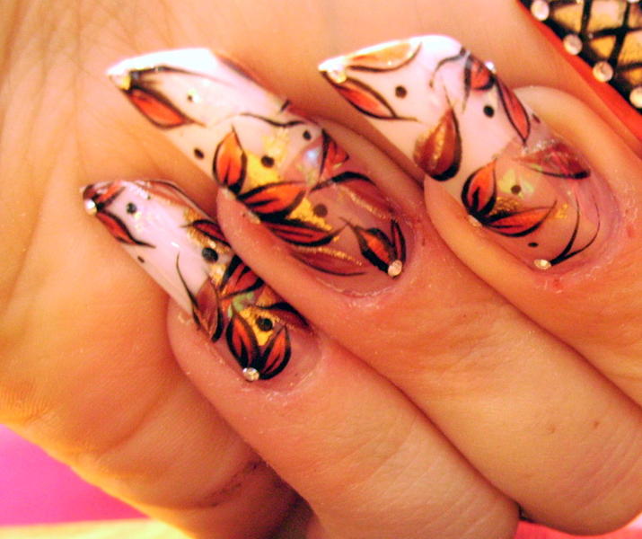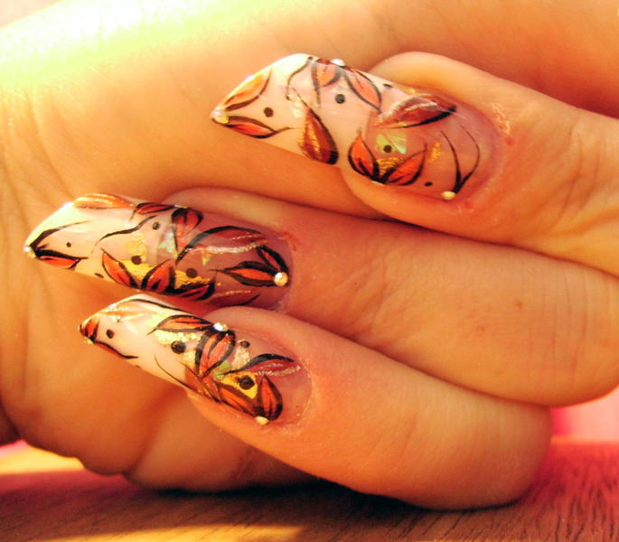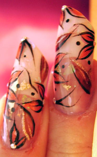 Bon toujours malade mais je supportais plus l'ancienne (heu.. quoique recente ! :oops:) deco de ma main gauche alors paf, remplacée par celle-ci tres simple et de saison ... ça me permettra au moins d'attendre une nouvelle energie pour quelque chose de plus recherché !!:9-blush: