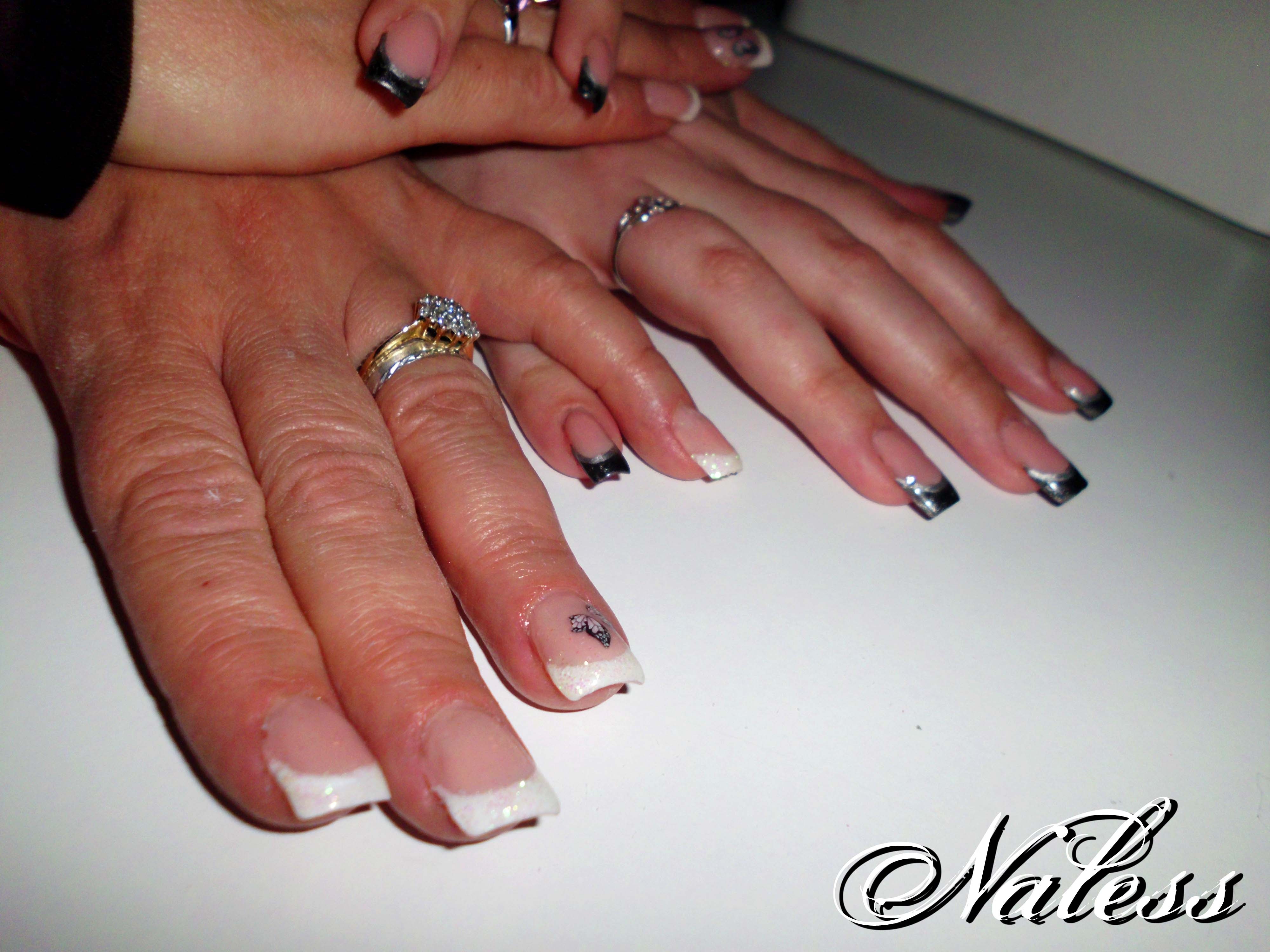 Elle me demande un RDV supplémentaire, le même jour pour sa future belle-mère et sa future belle soeur, pour finir la belle soeur n'est pas venu et voilà le travail... il y a quelques défauts, certain ongle ne sont pas assez pincher. mais elles étaient super ravie toute les 2, donc je suis a moitiés contente (j'suis super difficile ^^)