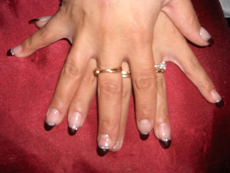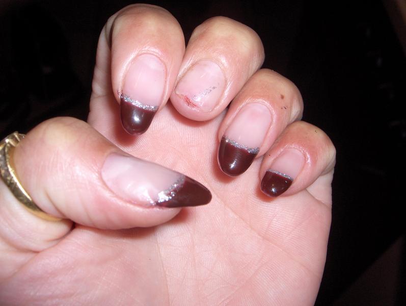french bordeau avec ligne paillettée dessus. J'ai un loupé ma french a certains endroit, elle est un peu trop épaisse. J'attend vos avis ;-)