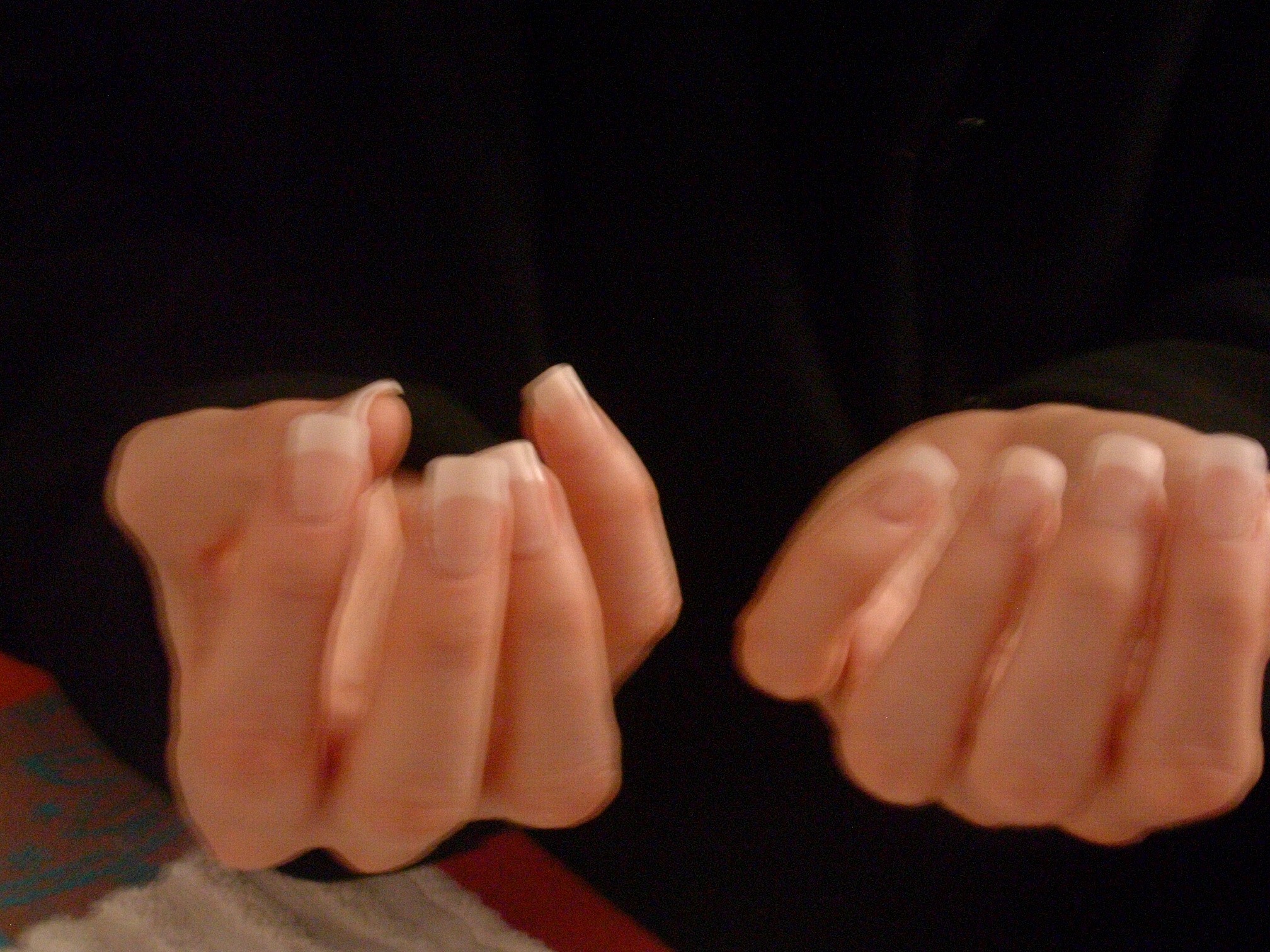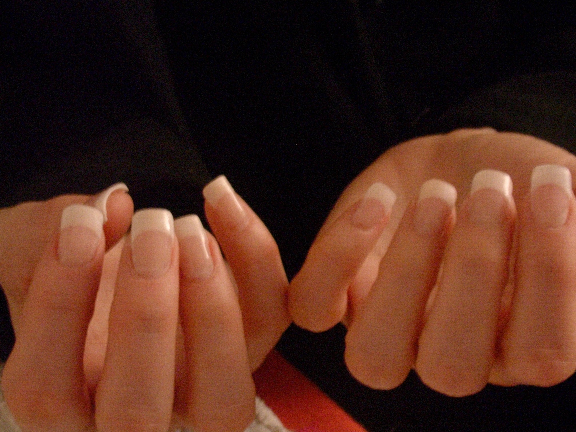 par ex : l'index de la main droite ( a gauche sur la photo) , part en pelle, lime bien droit, sur les cotés, arrondi les angles, pareil le kiki est trop carré par rapport a l'ensemble des formes de tes ongles, mais il est beau