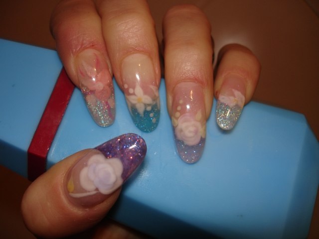 Voici quelques photos de mes ongles . Entierement en resine ez flow. sauf pour la resine rose pailletée car c'est moi qui ai fait un melange de clear et de paillettes.